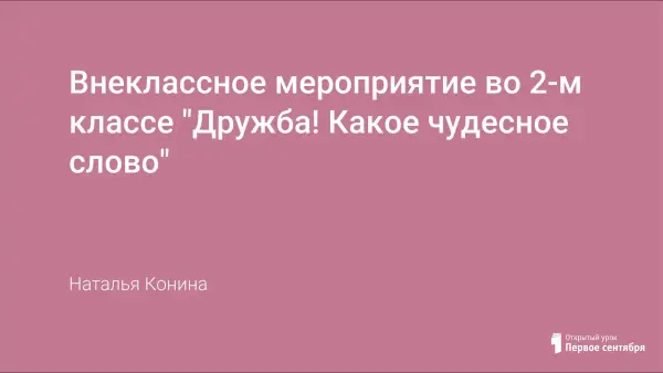 Внеклассное мероприятие проводится в форме праздника. Цель мероприятия: показать ценность и необходимость дружбы. Задачи: уточнить представления детей о том, что такое дружба и каким должен быть настоящий друг; воспитывать вежливое отношение друг к другу; содействовать формированию дружного коллектива класса.