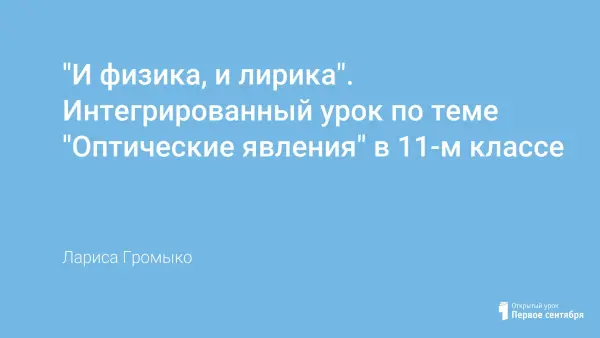 "И физика, и лирика". Интегрированный урок по теме "Оптические явления" в 11-м классе