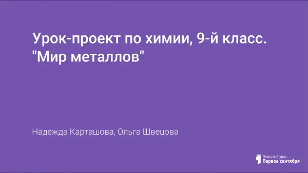 Урок-проект по химии, 9-й класс. "Мир металлов"