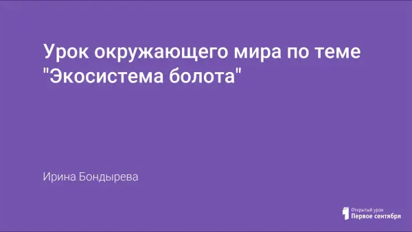 На уроке учащиеся знакомятся с растениями и животными болот, их «профессиями» в экосистеме, ролью болот в жизни человека. Мультимедийные технологии помогают учащимся сформировать более четкое представление об обитателях этой экосистемы.