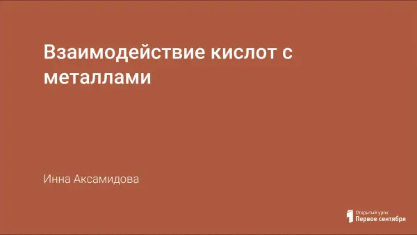 Цель урока - продолжить характеризовать общие химические свойства кислот в свете ионных представлений. Для этого нужно: научиться пользоваться рядом напряжений металлов для прогнозирования возможных химических реакций кислот. Экспериментально проверяется возможность взаимодействия хлороводородной кислоты с различными металлами. Дети выясняют закономерности взаимодействия кислот с металлами и подходят к понятию активности. Это понятие закрепляется в игровой форме.