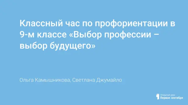 Классный час по профориентации в 9-м классе «Выбор профессии – выбор будущего»