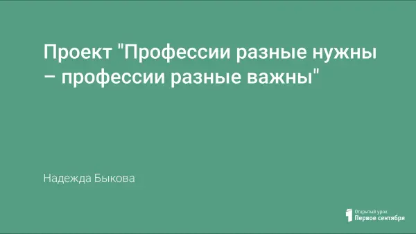 Представлен краткосрочный проект "Профессии разные нужны, профессии разные важны".
