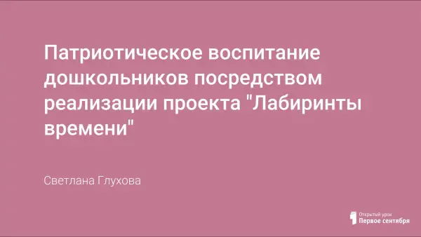 Представлен конспект занятия патриотического воспитания дошкольников посредством реализации проекта "Лабиринты времени".