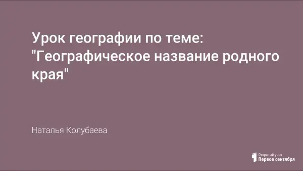 Урок проводится с целью изучения географии своего субъекта федерации. Урок дает сведения о возникновении названий географических объектов на территории Переволоцкого района Оренбургской области. Более детальному изучению расположения географических объектов на местности способствует работа с картами региона.