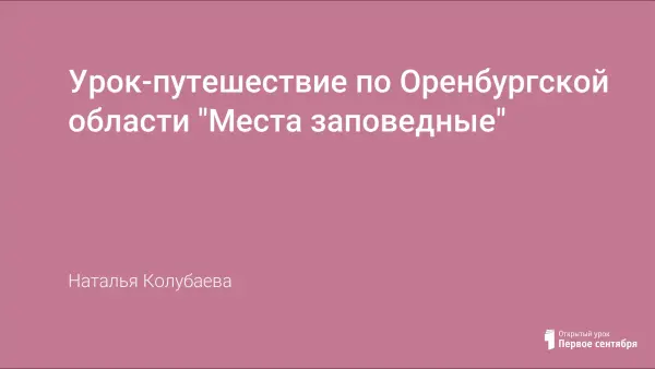 Урок проводится в форме путешествия по заповедным местам Оренбургской области. Помимо знакомства с уникальными уголками природы области, учащиеся осознают свою ответственность за их дальнейшую судьбу. Материал можно использовать как в преподавании уроков, так и во внеклассной работе.