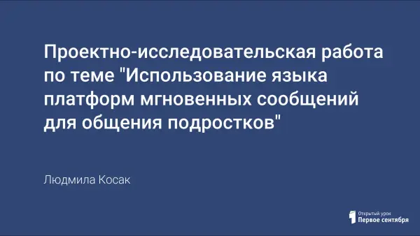 В работе исследована проблема использования платформ мгновенных сообщений для общения между подростками, применение языка мессенджера для сообщений, сокращений из русского и английского языков, применения эмодзи для выражения эмоций. Подросток и социальная сеть – это одна из актуальных тем нашего времени. Социализация человека происходит в процессе воспитания и под значительным влиянием среды. Среда современного человека, в которой происходит воспитание, существенно изменилась. Сейчас наиболее сильное влияние оказывает Интернет. В настоящее время очень обострилась ситуация влияния как Интернета, так и социальных сетей на подрастающее поколение. В настоящее время в мире существует довольно много средств, форм и способов общения, в частности используют глобальную платформу мгновенных сообщений мессенджер, где люди общаются, делятся какой-либо информацией, знакомятся. Следует заметить, что платформа мгновенных сообщений развивается довольно стремительно, превращаясь из большой игрушки для отдельных интеллектуалов в источник всевозможной полезной информации для всех, а также становится основной формой виртуального общения.