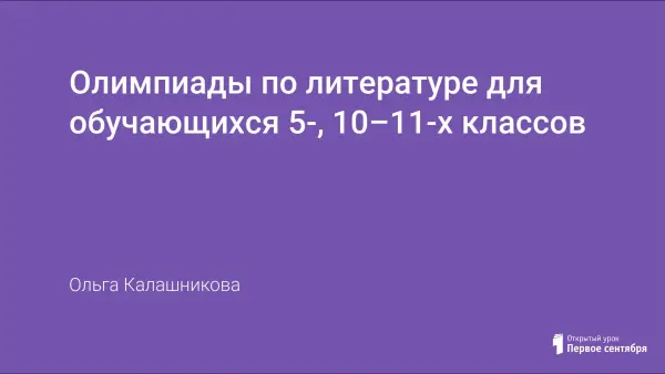 Представлены задания для проведения олимпиад по литературе для обучающихся 5-, 10–11-х классов.