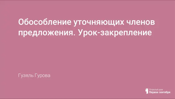 На уроке повторяются понятия уточняющих, пояснительных и присоединительных членов предложения, расширяются знания об условиях их обособления. Формируются навыки грамотного пунктуационного оформления членов предложения в письменной речи, ученики готовятся к ЕГЭ.