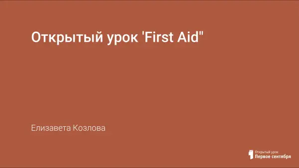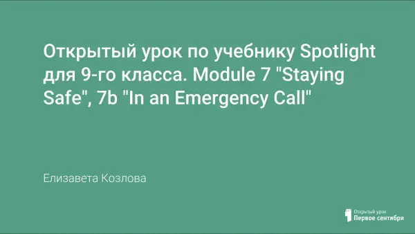 Урок “First Aid” проводится в 9-м классе по учебнику “Spotlight” во время изучения Module 7 “Staying Safe”. Урок комбинированный, направлен на систематизацию знаний учащихся по чрезвычайным ситуациям. Способствует развитию иноязычной коммуникативной компетенции и раскрытию межпредметных связей английского языка, ОБЖ и биологии, что свидетельствует о его интегрированном характере. На уроке изучается новый материал (материалы о службе оказания первой медицинской помощи и новая лексика по теме). Также обобщаются пройденные ранее лексические единицы, грамматический материал и развиваются коммуникативные умения учащихся. Ученики знакомятся с ситуациями, которые можно назвать "чрезвычайными", с действиями при чрезвычайных ситуациях. Развивающий характер предложенных заданий позволяет формировать у учащихся пытливый ум, совершенствовать коммуникативные умения, воспитывать личностные качества в рамках диалога культур.