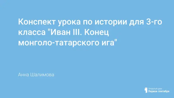 Представлен конспект урока по истории в 3-м классе по теме «Иван III. Конец монголо-татарского ига». Основной целью урока является: рассказать о завершение монголо-татарского ига, познакомить учащихся с московским князем Иваном III, выявить значение его правления. Во время урока учащиеся находят ответ на проблемный вопрос.