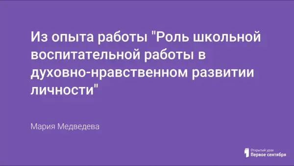 В статье сообщается об опыте работы школы по реализации воспитательной системы, системообразующим компонентом которой является духовно-нравственное развитие личности.