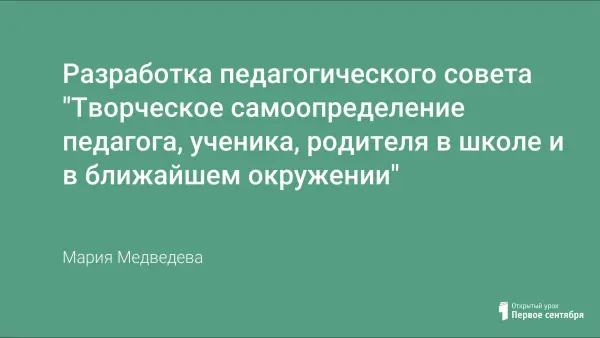 В статье содержится материал по подготовке и проведению педсовета о творческих подходах к образовательному процессу. В процессе работы на педсовете учитель становится более уверенным в себе, стремящимся к дальнейшим поискам, находкам и достижениям, чтобы успешно реализовать собственные способности и формировать личностные компетенции.