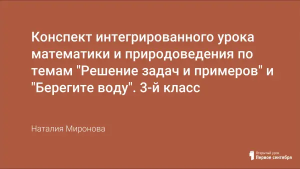 Данный урок проводился в рамках недели интегриро-ванных уроков. Урок разработан по темам: "Решение задач и примеров на увеличение и уменьшение числа в несколько раз" и "Берегите воду". Урок проходил в коррекционном классе. Смена деятельности позволила на уроке выполнить большой объём заданий, поднять мотивацию к учению. Использование групповых, игровых, коммуникативных технологий позволили разнообразить урок, внести элемент интриги. Материал не даётся в готовом виде, а предстаёт перед детьми в виде занимательных препятствий, прохождение которых позволяет достичь цели.