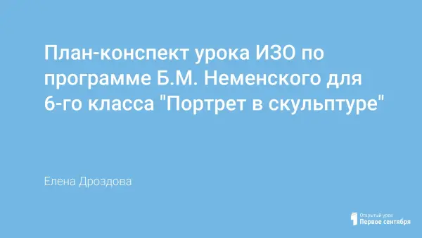 План-конспект урока ИЗО по программе Б.М. Неменского для 6-го класса "Портрет в скульптуре"