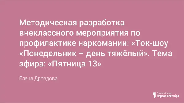 Методическая разработка внеклассного мероприятия по профилактике наркомании: «Ток-шоу «Понедельник – день тяжёлый». Тема эфира: «Пятница 13»