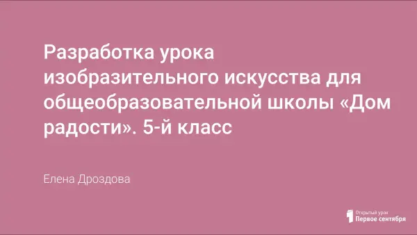 Разработка урока изобразительного искусства для общеобразовательной школы «Дом радости». 5-й класс
