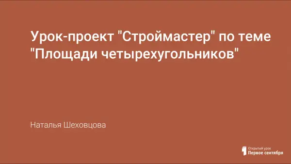 Предлагаю после изучения в 8-м классе темы геометрии «Площади четырехугольников» провести урок-проект «Строймастер». Цели и задачи урока: закреплять и развивать понятия площади четырехугольников; применять на практике теоретический материал; развивать умения построения и записи математической модели для решения практической ситуационной задачи.