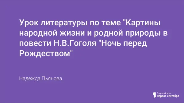 Дать учащимся представление о страницах жизни Н.В. Гоголя, о неповторимом национальном колорите повести "Ночь перед Рождеством".