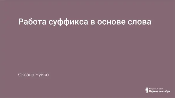 Урок содержит элементы исследовательской деятельности, практической работы. Применение интерактивных технологий и ИКТ ресурсов позволяет младшему школьнику за один урок охватить большой объём учебного материала, через групповую работу раскрыть значение термина "суффикс", обозначить его роль в русском языке.