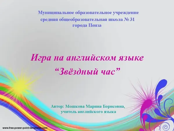 Заключительный урок по теме учитель может провести по-разному: использовать материал учебника Test yourself или Progress Check, составить свои тесты, а можно провести интересную компьютерную игру, от которой получат удовольствие ваши ученики и вы сами. В данной статье приводится пример такой финальной игры для 7-го класса по теме “Встреча с победителями конкурса”.