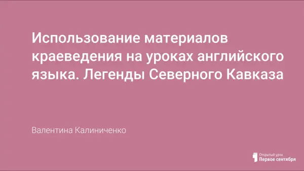 Использование материалов краеведения на уроках английского языка. Легенды Северного Кавказа