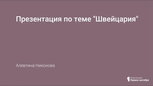 Презентация включает в себя данные о географическом положении Швейцарии, ее природных ценностях, о том, чем гордятся швейцарцы, и что является визитной картой этой страны. Презентация может быть использована как наглядный материал в проведении занятий по теме «Die Schweiz».