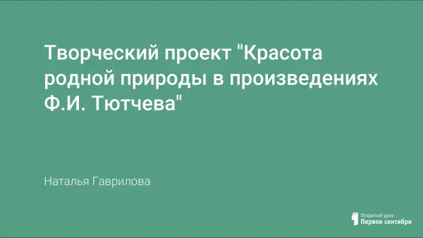Поэт Ф.И. Тютчев в своих стихах удивительно точно описал различные природные явления, картины окружающего нас мира. Дети младшего школьного возраста способны интуитивно осознать эту неразрывную связь человека и природы, ассоциативно оценить и осмыслить словесные образы и зрительное восприятие. Форма проведения занятия – творческий проект – позволяет детям в полной мере проявить свое творчество, исследовательские наклонности.