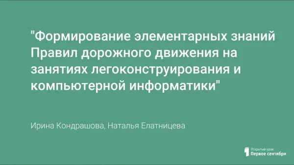 "Формирование элементарных знаний Правил дорожного движения на занятиях легоконструирования и компьютерной информатики"