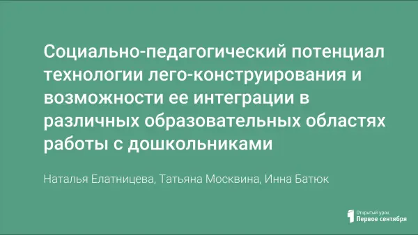 Статья знакомит с видами детского лего-конструирования и возможностями интеграции этого вида творчества с различными образовательными областями, а также раскрывает возможности развития конструктивного мышления детей старшего дошкольного возраста.