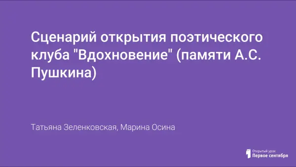 Сценарий открытия поэтического клуба "Вдохновение" (памяти А.С. Пушкина)