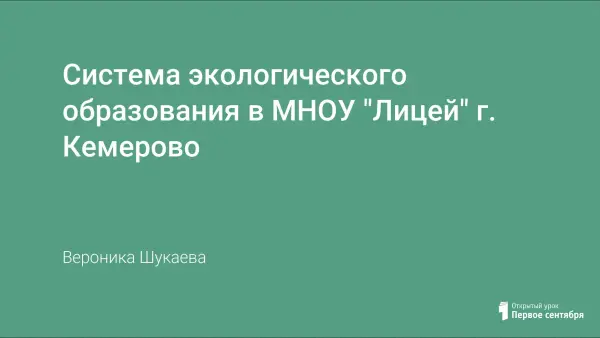 Привычку поступать по отношению к природе гуманно, следуя законам мировой морали, нужно воспитывать с самого раннего детства. В докладе отражен опыт работы преподавателей муниципального нетипового общеобразовательного учреждения "Лицей" по формированию системы экологического образования, охватывающую как урочную, так и внеурочную деятельность учащихся.