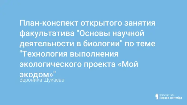 План-конспект открытого занятия факультатива "Основы научной деятельности в биологии" по теме "Технология выполнения экологического проекта «Мой экодом»"