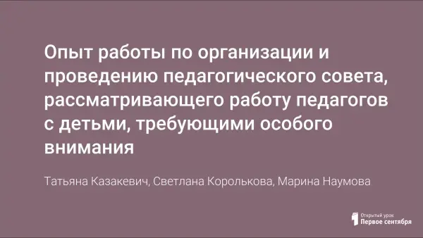 Представлен конспект опыта работы по организации и проведению педагогического совета, рассматривающего работу педагогов с детьми, требующими особого внимания.