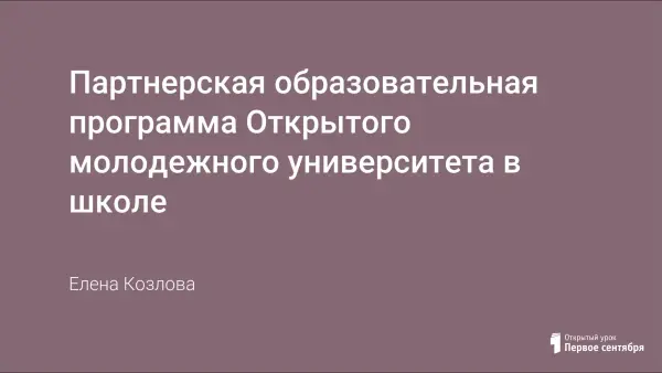В статье “Реализация Партнерской образовательной программы Открытого молодёжного университета в школе” рассмотрены основные направления и этапы реализации программы в МБОУ “СОШ №82” г. Кемерово.