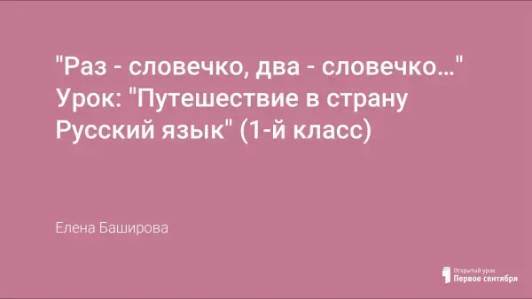 "Раз - словечко, два - словечко…" Урок: "Путешествие в страну Русский язык" (1-й класс)