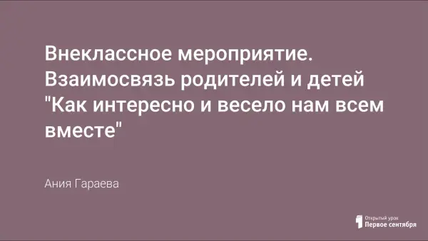 Самое главное в работе классного руководителя — это взаимодействие родителей и детей. Эффективность работы классного руководителя по воспитанию и обучению детей во многом зависит от того, насколько он сотрудничает с семьей. Одна из самых главных задач данного мероприятия - способствовать единению, сплочению семьи, установлению взаимопонимания родителей и детей.
