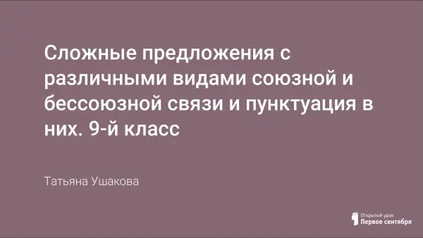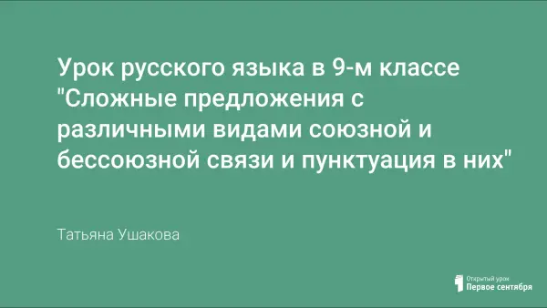 Урок русского языка «Сложные предложения с различными видами союзной и бессоюзной связи и пунктуация в них» позволяет учащимся 9-го класса закрепить материал по теме и подготовиться к итоговой аттестации. Занятие построено на основе использования методики «полетного» повторения (системы постоянного попутного повторения изученного), проблемного обучения, индивидуальной и групповой работы, что позволяет эффективно закрепить изученный материал и эффективно подготовиться к письменному экзамену по русскому языку.