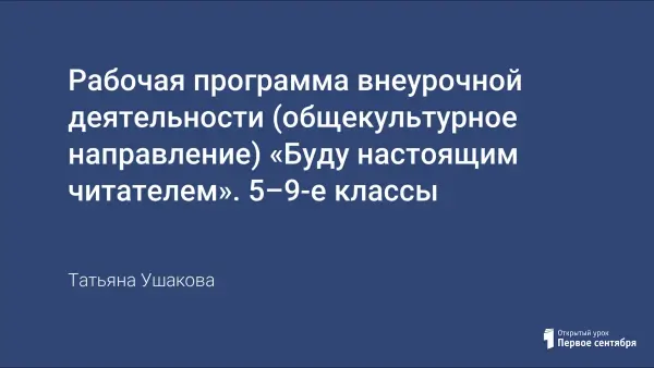 Программа ориентирована на овладение учащимися продуктивным чтением, правильной читательской деятельностью, в процессе освоения которой учащиеся изучат этапы работы с текстом, приобретут читательские умения, в результате чего у них появится интерес и мотивация к чтению. Программа рассчитана на обучающихся 5–9-х классов. На реализацию программы отводится по 34 часа из расчёта 1 час в неделю.