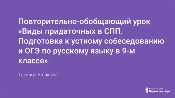 Урок позволяет учащимся 9-го класса закрепить материал по теме «Виды придаточных в СПП» на материале текста В.Молчанова. Занятие построено на основе использования методики «полетного» повторения (системы постоянного попутного повторения изученного), проблемного обучения, индивидуальной и групповой работы, что позволяет эффективно закрепить изученный материал, отработать правописные навыки и подготовить учащихся к устному собеседованию и ОГЭ по русскому языку.