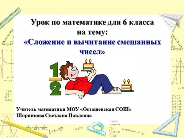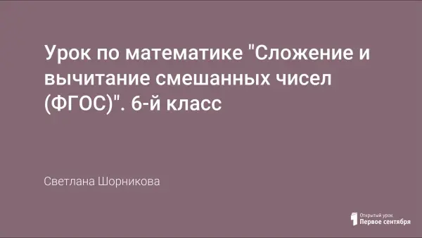 Цели урока: организовать деятельность учащихся по закреплению знаний, умений и навыков по теме «Сложение и вычитание смешанных чисел».