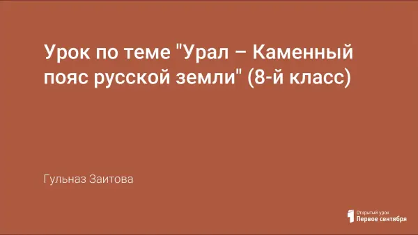 Основная цель представленного урока – создание у учащихся целостного представления об Урале, о разнообразии его природных условий и ресурсов. Учащиеся знакомятся с особенностями географического положения, природных условий и ресурсов Уральских гор, развивают навыки работы с картой, формируют умения анализировать, объективно оценивать свою работу.
