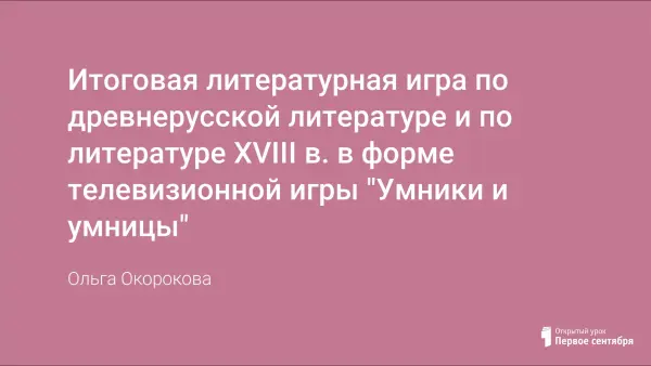 Литературная игра – это эффективная форма контроля знаний и умений учащихся. Игра может проходить как традиционная викторина, конкурс между командами, но можно различные телевизионные конкурсы адаптировать к школьным условиям. Для уроков литературы как нельзя лучше подходит игра «Умники и умницы», которая дает возможность учащимися проявить себя в каком-то новом качестве, показать эрудицию, смекалку, логику.