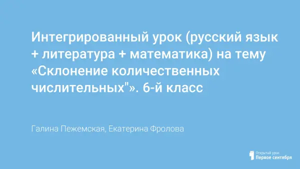 Интегрированный урок (русский язык + литература + математика) на тему «Cклонение количественных числительных"». 6-й класс