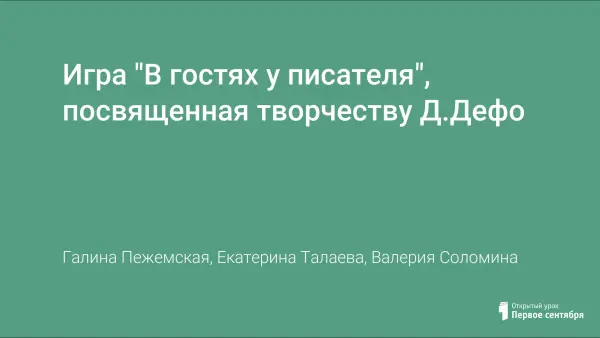 Представлена презентация к игре "В гостях у писателя", посвященная творчеству Д.Дефо.