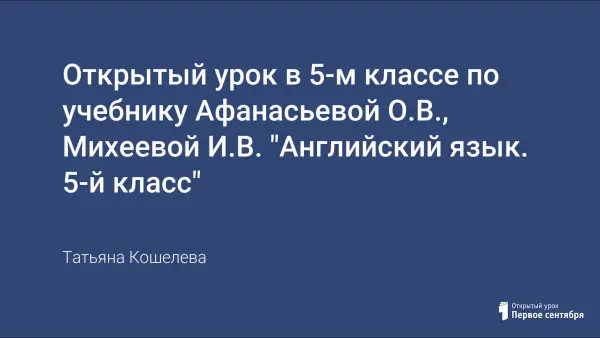 Открытый урок в 5-м классе по учебнику Афанасьевой О.В., Михеевой И.В. "Английский язык. 5-й класс"