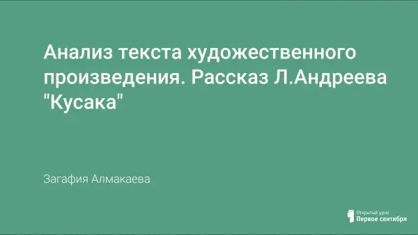 Обучение приемам анализа художественного текста на уроке литературы в 7-м классе по теме «Анализ художественного произведения. Рассказ Л.Андреева «Кусака»; развитие речи детей, умения рассуждать, отстаивать собственное мнение; воспитание чувства сострадания, сочувствия, жалости и любви к «братьям меньшим», понимания и готовности принимать участие в решении главной проблемы XX века - «Человек и окружающий мир».