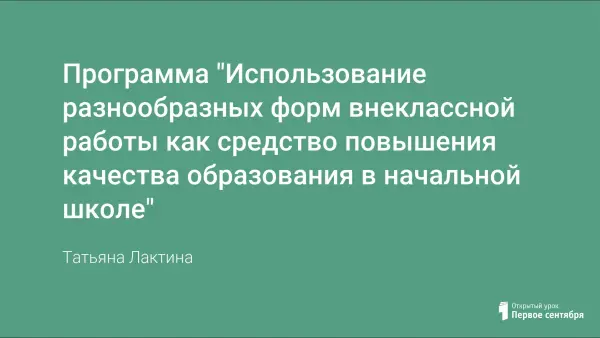 Программа "Использование разнообразных форм внеклассной работы как средство повышения качества образования в начальной школе"