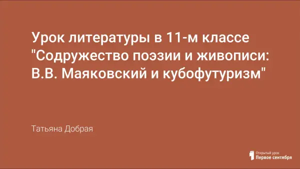 Урок литературы в 11-м классе "Содружество поэзии и живописи: В.В. Маяковский и кубофутуризм"