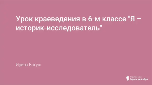 Урок краеведения в 6-м классе "Я – историк-исследователь"